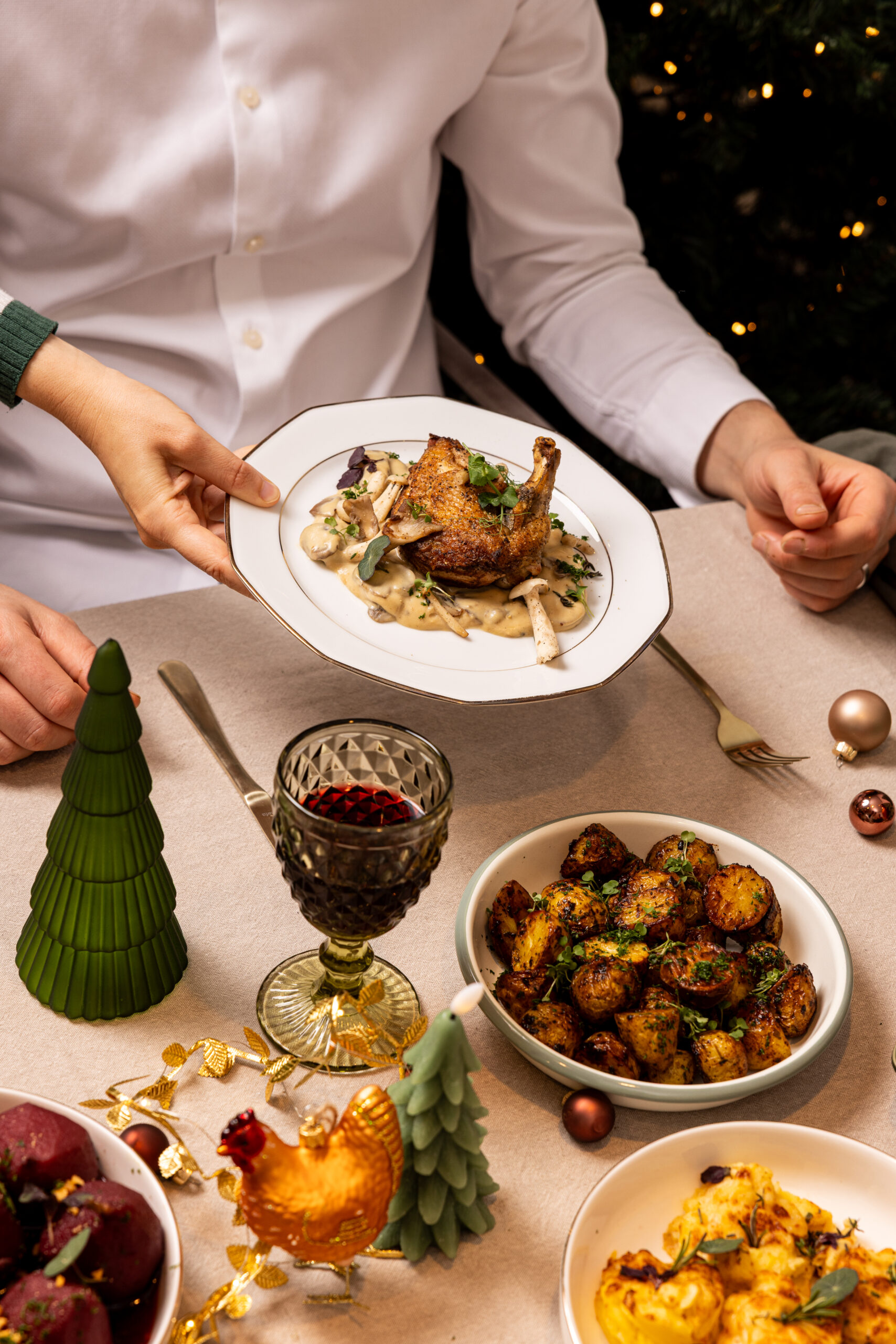 Een parelhoenfilet met boutje, voor een fijne en zeer elegante smaak! Vergezeld van een mooie variëteit van boschampignons in een romige saus.